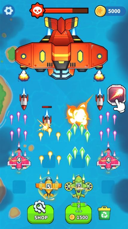 1、采用合并机制,玩家能够借助收集飞机碎片进行合并升级,组建更为强大的飞机战队。