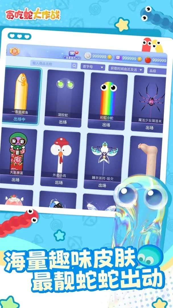 【Q萌可爱,海量皮肤】极具Q萌清新的画风,定会让你喜爱有加。丰富多样的小蛇皮肤全面开放,任你随心挑选。