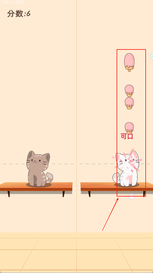 2、玩家需要移动猫咪,接住掉下来的雪糕。
