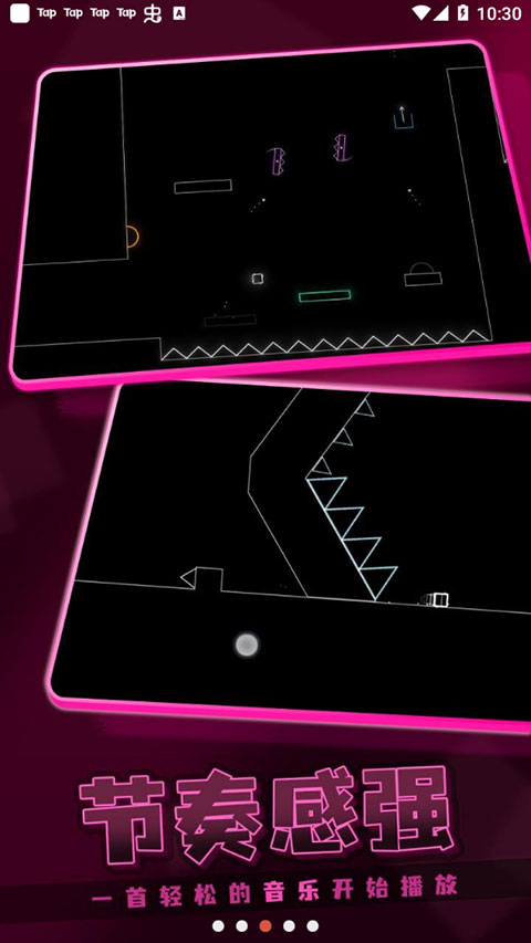 1、游戏画面简单,操作富有节奏感,玩家需要跟随音乐的节奏通过关卡。
