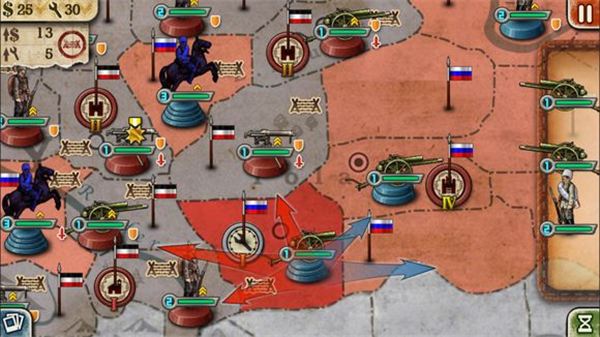 8、顺便提醒一下,这场战役如果想要俄国赢,千万不要随便拿现有的军队跟德国人硬碰硬。人家(德国)手中绝大部分都是一级两级的军队,配有各种突击防御战术,直接打无异于送死。首先必须要用优势兵力围攻才行,其次要充分利用好【战壕】减少德军的进攻次数,同时用好【补给线】回复部分受损严重的军队。再者,大炮永远都是硬道理,这是因为一方面大炮进攻时很多兵种是没有办法反击的(坦克兵和有要塞炮的地方除外);另一方面,大炮的攻击力和耐久力很强,甚至可以在短的时间里升级并且自身回复部分血量