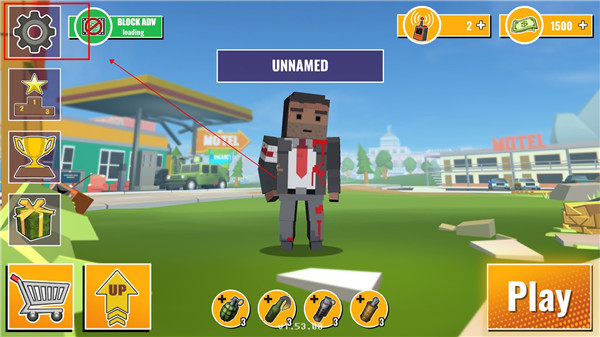 1、第一步,打开未知的像素枪战最新版本,接着点击进入游戏,再点击左上角的设置图标。