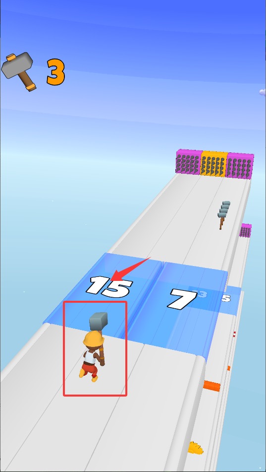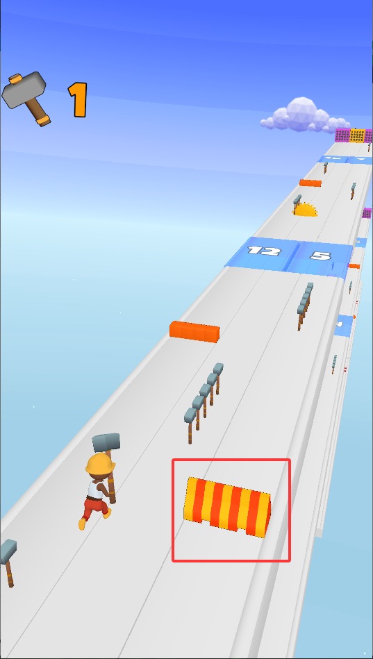 1、资源收集机制:在高速跑酷过程中收集散落的锤子道具,积累足够的破坏力量,系统为后续关卡做准备。