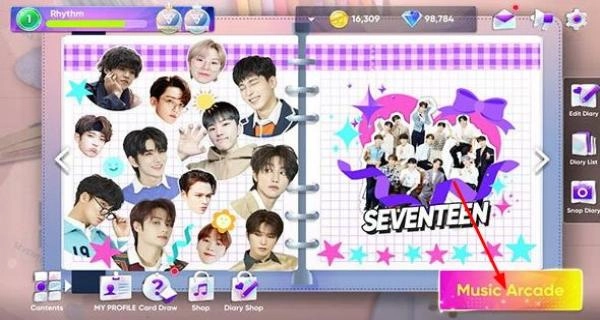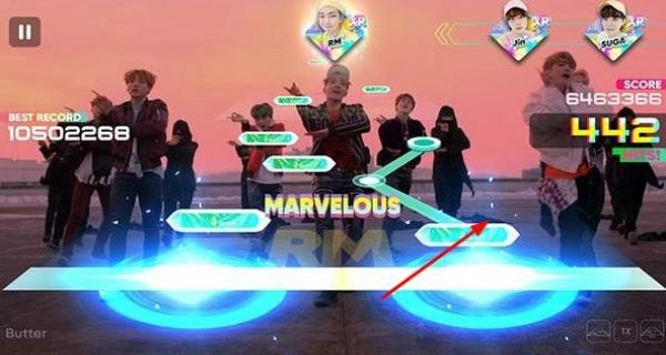 1. 进入游戏之后,挑选自己心仪的偶像团体以及歌曲,在节奏界面依照音乐给出的提示,点击屏幕上的按键,通过完成音符连击来获取较高的分数。