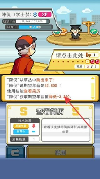 2. 通过与角色展开互动,运用技能查阅简历,对员工薪资期望进行调整,进而实现对公司的管理。