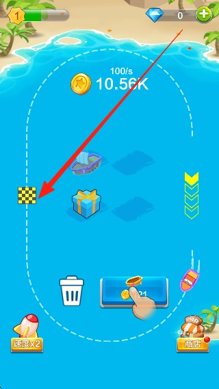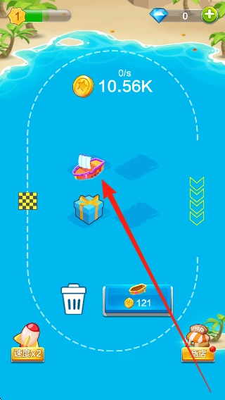 1. 初始体验与熟悉过程:进入后,先了解卡通场景以及放置合成的规则,同时收集初始金币,进而解锁第一艘基础战舰,在此过程中熟悉基本操作与玩法模式。