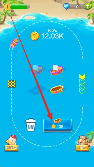 2、利用收集的金币解锁部分战舰,经合成进行升级,获取更多收益,尝试挑战实力处于中等水平的敌人。