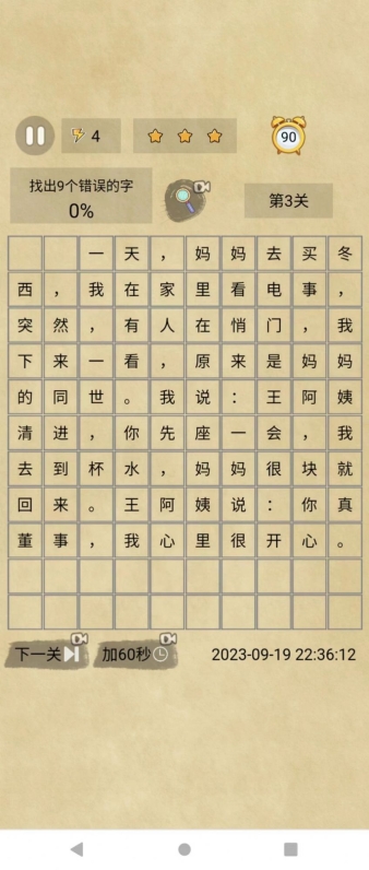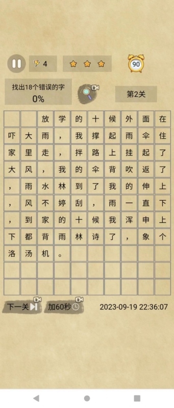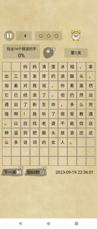 2、需要玩家在规定的时间内尽可能找到错误的单词。