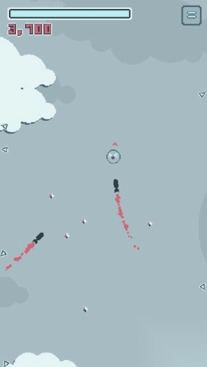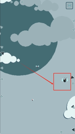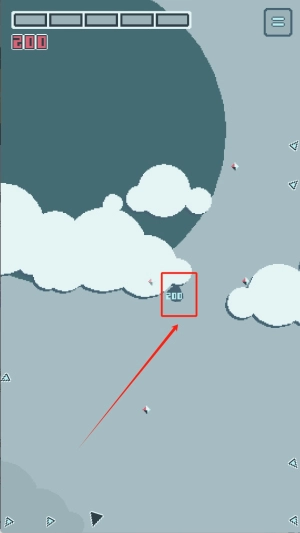 1. 驾驶红框所标记的飞机,于云层之间来回穿梭。过程中要留意躲避▲符号标识的障碍物,同时收集沿途出现的闪光点来积累分数,目前显示的得分为200分。