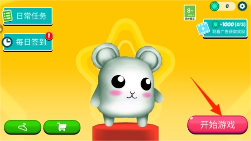 3、要操控萌宠前进的话,你得点击左下角的按钮,萌宠跑到终点,你就胜利啦。