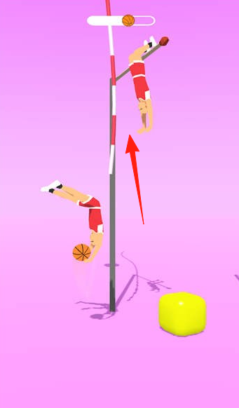 2、特技机制在粉色场景,借助高杆,做翻转、倒挂等特技动作,需精准控制角色轨迹,连续完成动作。