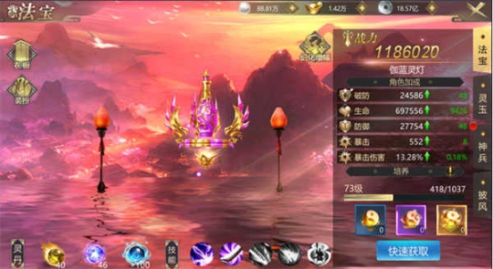 3、与此同时,仙友们能够通过喂养相应的潜能丹、灵力丹、飞升丹,来增强这些珍宝与角色的属性。法宝、灵玉以及披风各自具备独特技能,会随着等级的提升逐步解锁。特别要说明的是,飞升丹不仅能赋予稀有属性,还会为对应的系统属性带来一定百分比的加成呢!