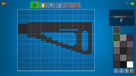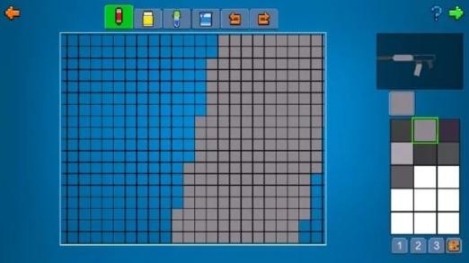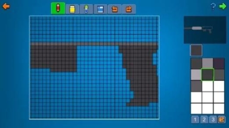 进入后,不要急着开始画,先规划好大概位置,防止空间不足导致缩水,或者枪械像素过低不美观