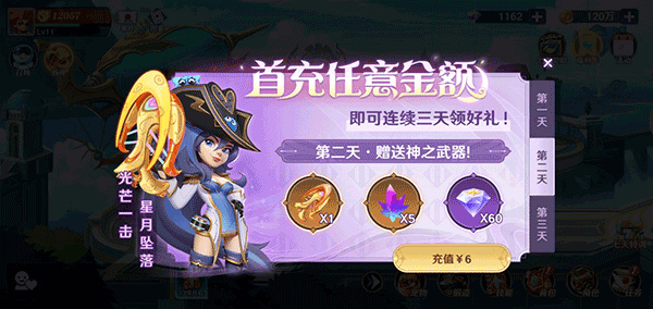 首次充值任意金额,连续三天领取丰厚奖励:在《弹弹奇妙冒险》的删档付费测试期间,只要您首次充值任意金额,即可连续三天领取晶钻、星尘结晶、鉴定卷轴等稀有道具。此外,第一天可获得传说宠物“暴怒骑士”,第二天可获得神之武器“星月弩”,第三天更可获得永久绝版时装“暗黑锁羽翼”,助您在冒险旅程中更加得心应手!