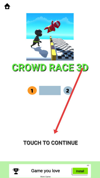 1、在启动页面,点击【触摸以继续】,进入《人群竞赛3D》,开始赛跑和攀爬的挑战。