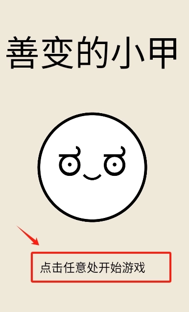 1、点击红色框内的任意位置开始游戏按钮,就可以进入善变的小甲游戏了。