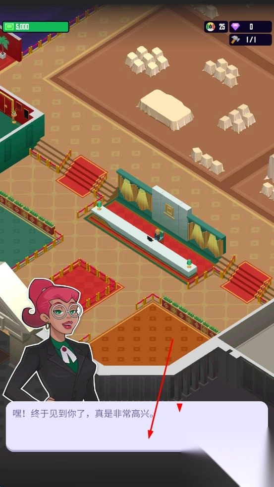 1. 进入游戏之后,首先挑选赌场场地,摆放轮盘桌、老虎机这类基础博彩设施,设定好游戏规则,然后开启营业,迎接第一批客人。