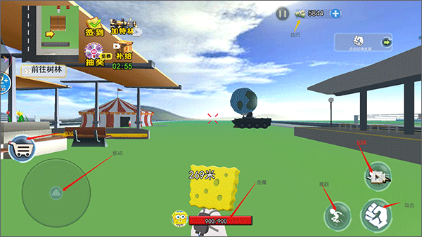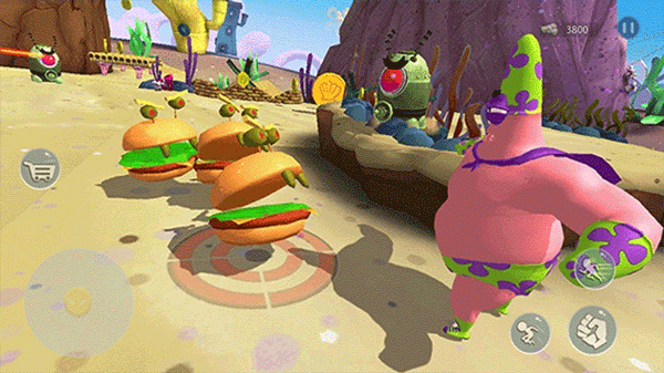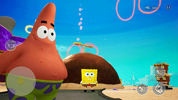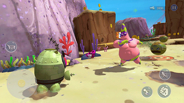 1、玩家可以选择扮演海绵宝宝、派大星或者珊迪,目的是从机器人入侵引发的危机中解救比基尼海滩。