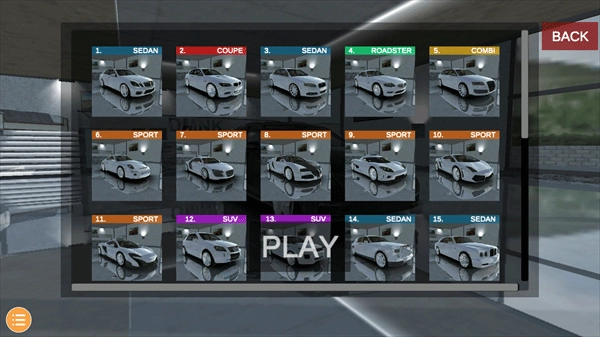2、点击左上角的“Car selection”,就能挑选心仪的车辆。