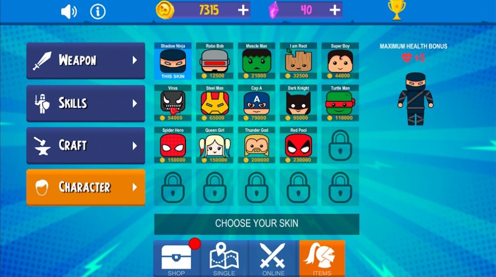 1. 游戏中的角色是一名满怀野心的忍者,他必须历经重重关卡,击败形形色色的敌人与 BOSS,从而成为最为强大的忍者。