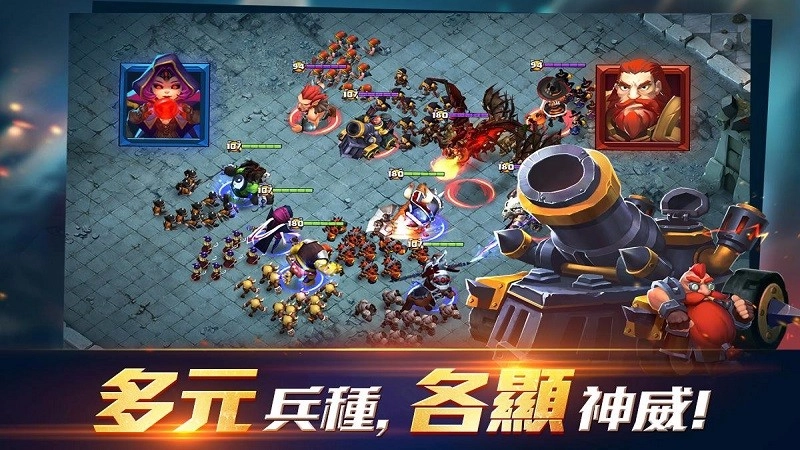热血激昂——英雄与士兵的完美融合,畅享掌间的军团征战!无需繁琐训练士兵,只要英雄屹立不倒,即可随心投入战斗!