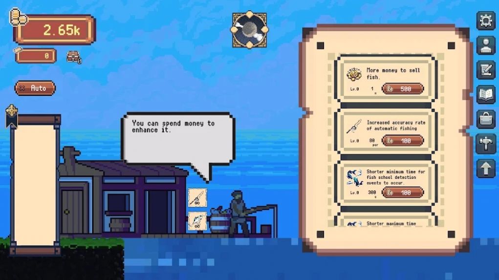 3、升级钓竿、鱼线和鱼饵,提高捕鱼效率和获得更珍贵的鱼。