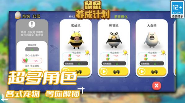 3、玩家可以根据老鼠的需求和性格来锻炼老鼠,给他们心理和体能上的训练和提高。