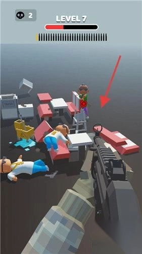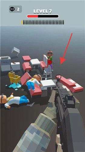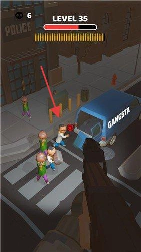 1. 在街头或者室内场景中,操控枪械对准敌人,开枪射击以清除目标,从而推进如LEVEL35、LEVEL7这类关卡。