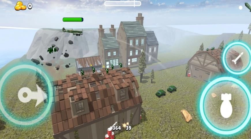 2、轻点屏幕右侧按钮即可投放导弹,迅速击毁沿途的敌机与障碍物。精准把握发射时机至关重要,这样能避免弹药浪费,实现高效输出。