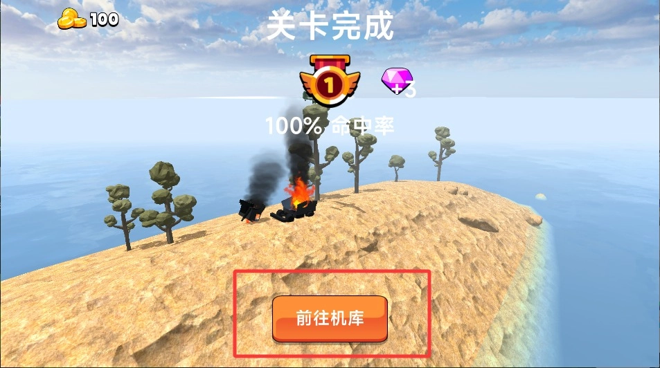 3、成功通关后,点击界面上的提示,就能进入机库,查看当前的战绩以及奖励。及时领取成就奖励,有助于为后续的挑战积累更为丰富的资源。