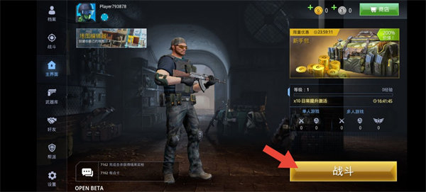 1、进入到游戏之后点击右下角的战斗选项。