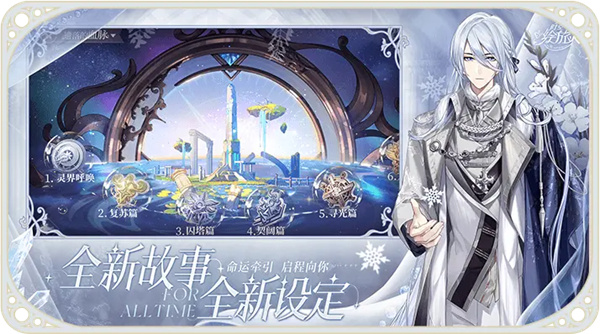 从绮丽西幻、废墟乐园、兽灵神话到现代恋爱日常,在不同的平行时空中开启你的故事,探索时间与爱的奥秘,每个世界都值得踏足。