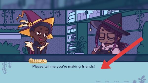 2、图中角色Cassava说着“Pleasetellmeyou\'remakingfriends!”,呈现对话场景,以经营魔法药草店、角色互动为主要玩法,充满奇幻经营乐趣。