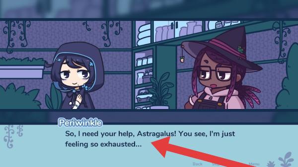3、角色Periwinkle向Astragalus求助,称自己感觉很疲惫,呈现剧情互动场景,推动角色间故事与经营玩法发展。