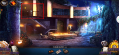 6、返回后院,点击火坑进行放大,此时会出现两个可嵌入物品的区域,将之前获得的百合花徽章放入其中,随即得到第一片金字塔碎片,与此同时还会获得一个手电筒。对手电筒进行点击放大操作,接着再次点击打开手电筒,之后放入电池,然后把手电筒合上,千万别忘了最后打开开关。