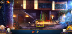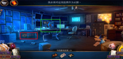 9、首先点击中间的绿框,待其放大后查看监控录像,利用照相机获取线索。接着,点击左下角的红框并打开,随后打开柜门,将画面点击放大,在蓝框处使用照相机获取线索。与此同时,别忘了在旁边的黄框处拿上马球杆。完成这些操作之后,先返回后院。