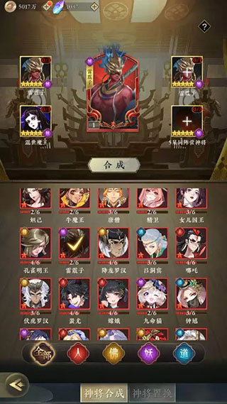 初始4星的神将可合成为5星神将,初始5星的神将可合成为6星神将。
