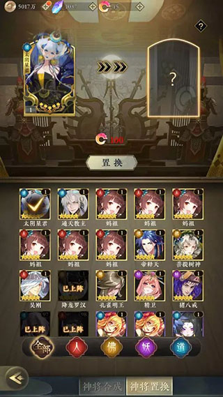 消耗一定数量的置换玉可对4星和5星神将进行置换。