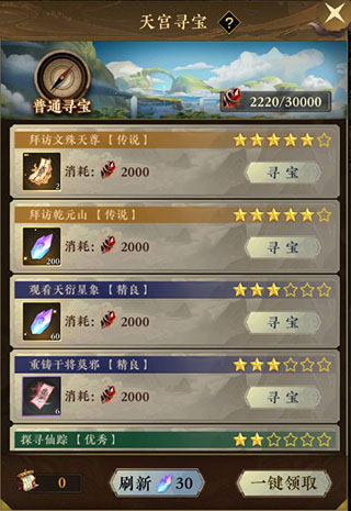 ②可通过刷新来刷出高品质的宝藏,宝藏品质越高奖励越丰厚。