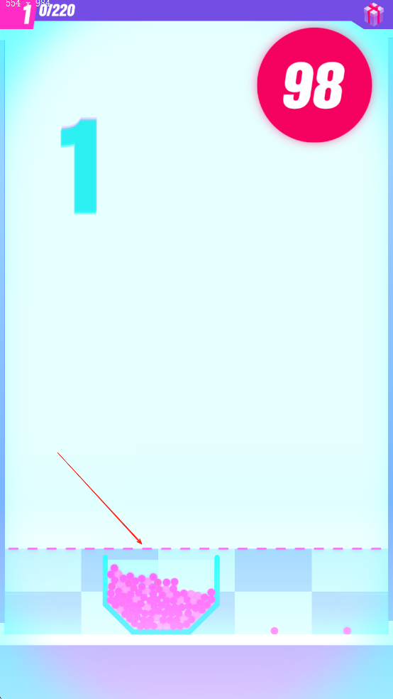1进入游戏后,点击屏幕上的任意方块,控制带孔的容器从顶部下落。首次尝试时,需要适应在重力作用下对容器倾斜角度的操控,以防小球直接弹出去。