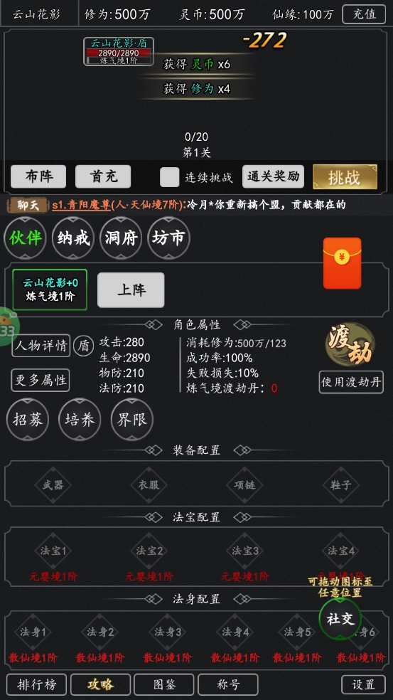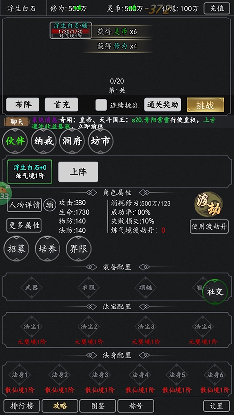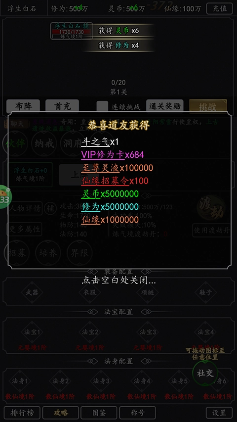 2、游戏上线即送斗之气称号、100份仙缘招募令、100W仙缘、500W灵币、500W修为以及10W至尊灵液