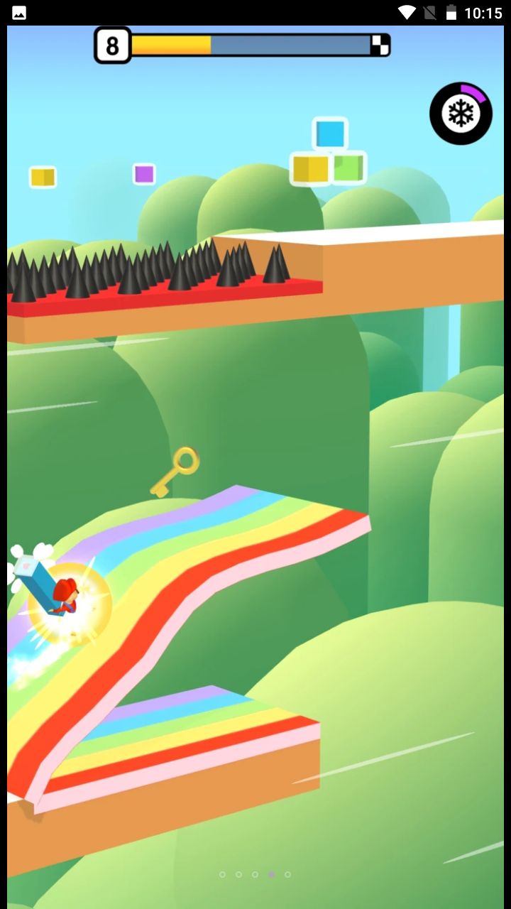 1、游戏操控十分简便,轻点屏幕就能使人物跳跃,长按屏幕则能让人物滑行。
