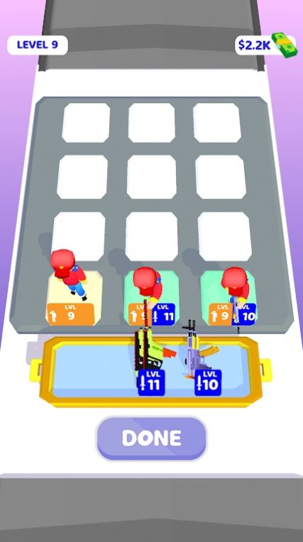 您将拥有一队角色,通过合并相同的角色来提升它们的级别。