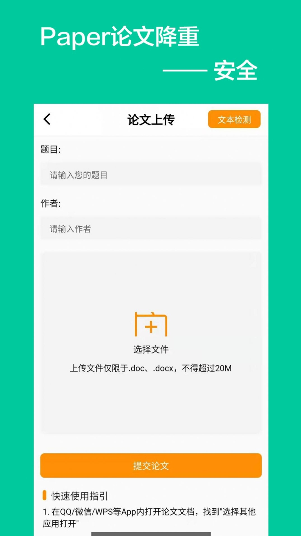 Paper论文降重是一款专注论文查重降重、论文检测论文查询论文修改的工具类APP,手机在线进行论文查重、论文降重修改操作,方便极速查重降重,平台拥有海量的对比数据库及专业的论文检测系统,为用户提供精准、快速、安全的论文查重检测修改服务。无论是毕业设计、毕业论文、学术论文、知网论文及小木虫、爱学术人士都可通过Paper论文降重APP进行查重检测修改,安全准确有效提高论文通过率。