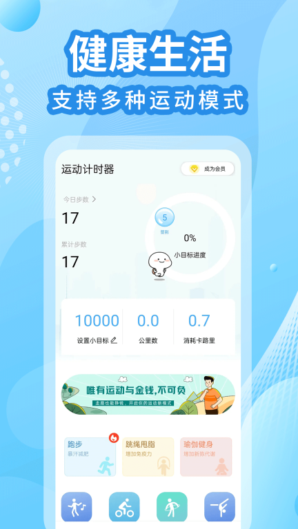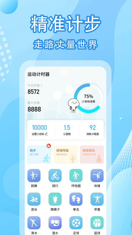 走路计步器是一款倡导健康生活、提高运动乐趣,让您变得更自律的运动记录软件。