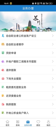 1、打开苏州公积金app官方版,点击业务办理,选择需要办理的业务,然后将会显示办理此业务的前提条件,如果不符合下列条件不能办理提取。