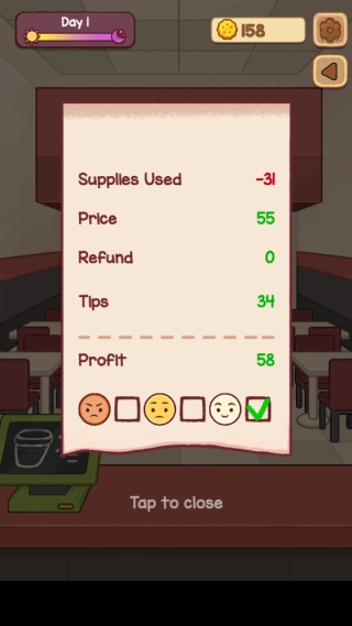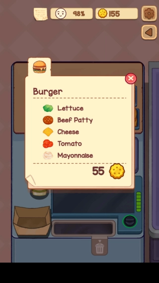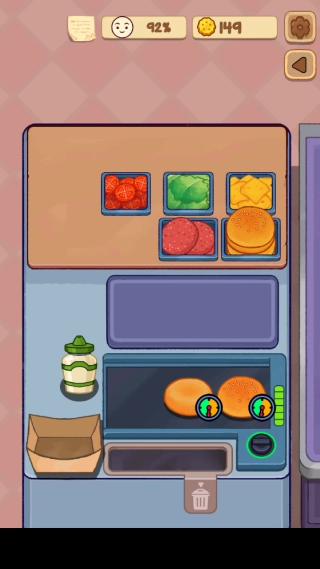 2. 这款游戏通过悠闲的背景音乐、可爱的顾客表情,以及烹饪成功时带来的满足感,营造出了轻松愉悦的氛围。