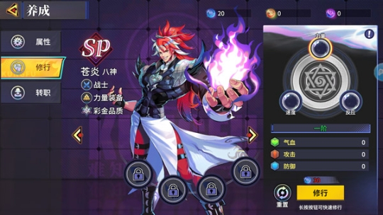 氪金玩家可培养【苍炎 八神】品质达到【开服庆典】——【修行赠礼】的条件,就能解锁相对应的免费领取和专属礼包。