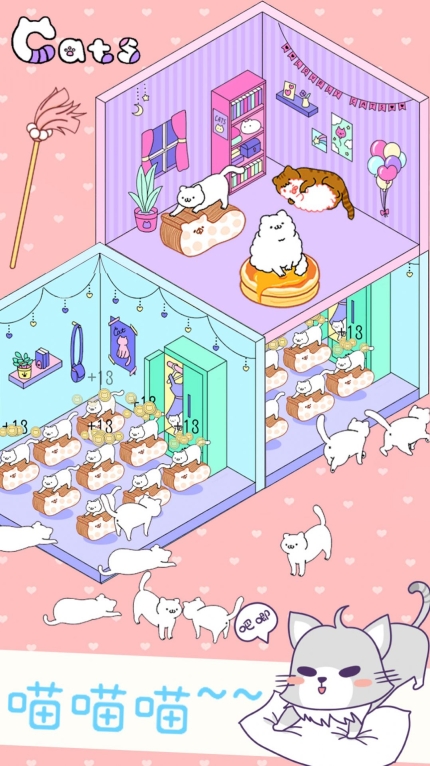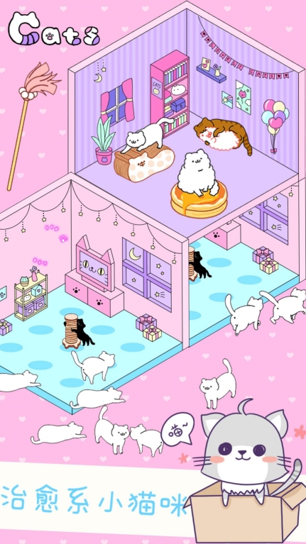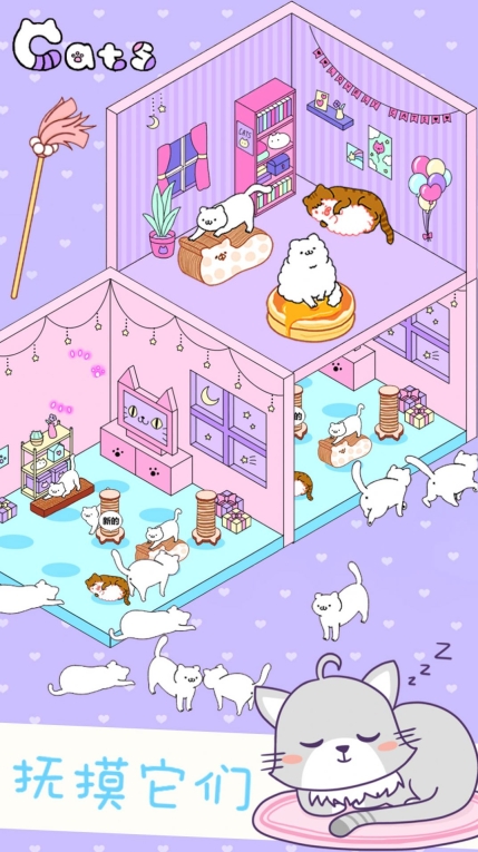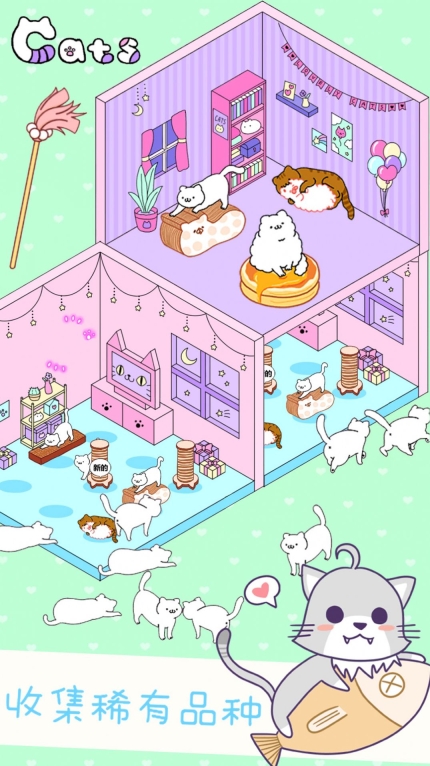 1、清新治愈的画风,将为玩家带来无比精彩的体验。快来收养你那可爱的小猫吧!