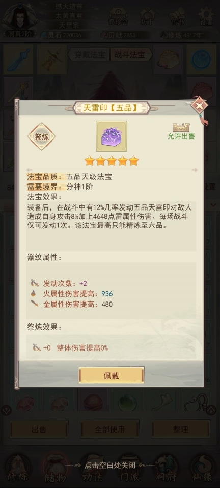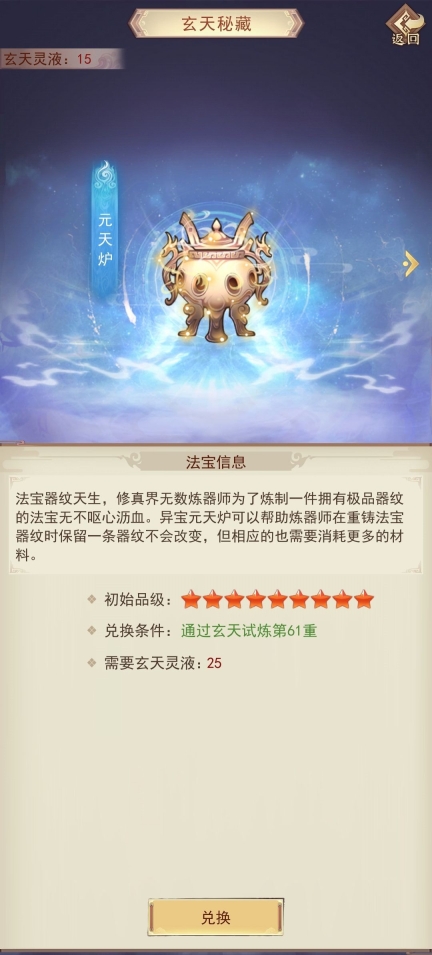 8.开放法宝精炼上限,天级及神级法宝可从仙九品精炼至最高神九品。